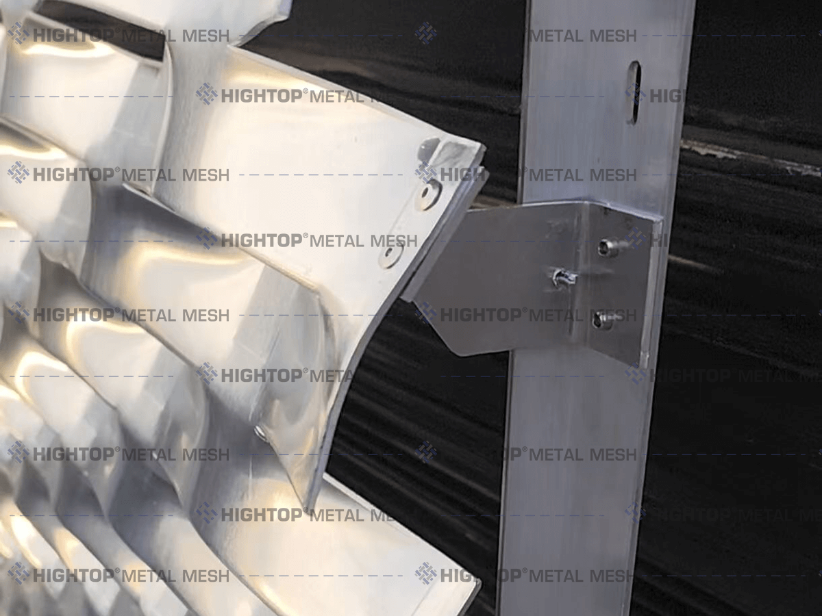 We use high-strength aluminum alloy brackets as the supporting. The expanded mesh is securely connected to the two reinforced aluminum angles (specifications customizable per project) using countersunk rivets or stainless steel bolts.